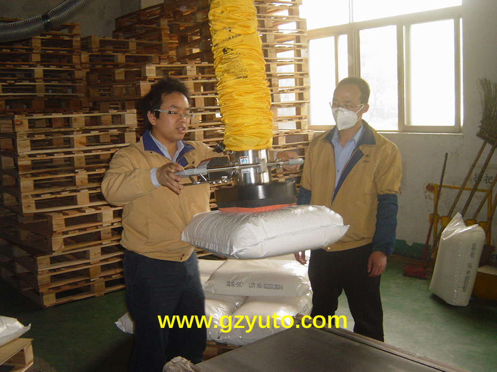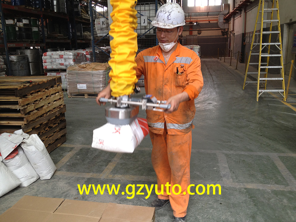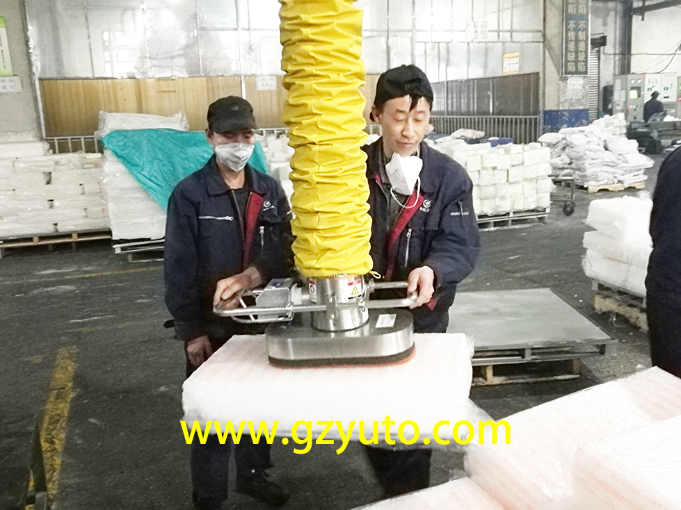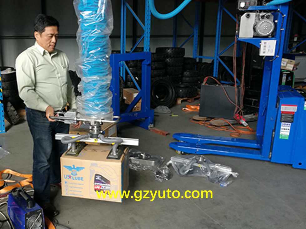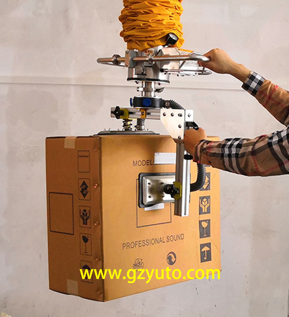 該設(shè)備通過(guò)真空吸盤(pán)來(lái)吸附物體, 吸住、上升、下降和釋放物體僅靠單手操作即可, 不需要任何其他外力。 用真空吸盤(pán)吸附物體比用吊鉤或者夾具的優(yōu)點(diǎn)在于不必?fù)?dān)心吸盤(pán)損壞產(chǎn)品的表面或者邊緣。