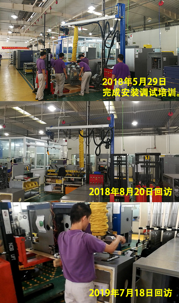 2018年5月 廣州五所(GWS)首次采購了我們的一臺真空吸吊機, 用來搬運生產(chǎn)線上50公斤重的設(shè)備。 在成功交付使用后, 我們一直密切跟蹤設(shè)備使用狀態(tài), 認真做好售后服務(wù)。 經(jīng)過一年的使用, 設(shè)備狀態(tài)完好率100%。 獲得了客戶高度認可, 并由此開啟了持續(xù)合作的新篇章。