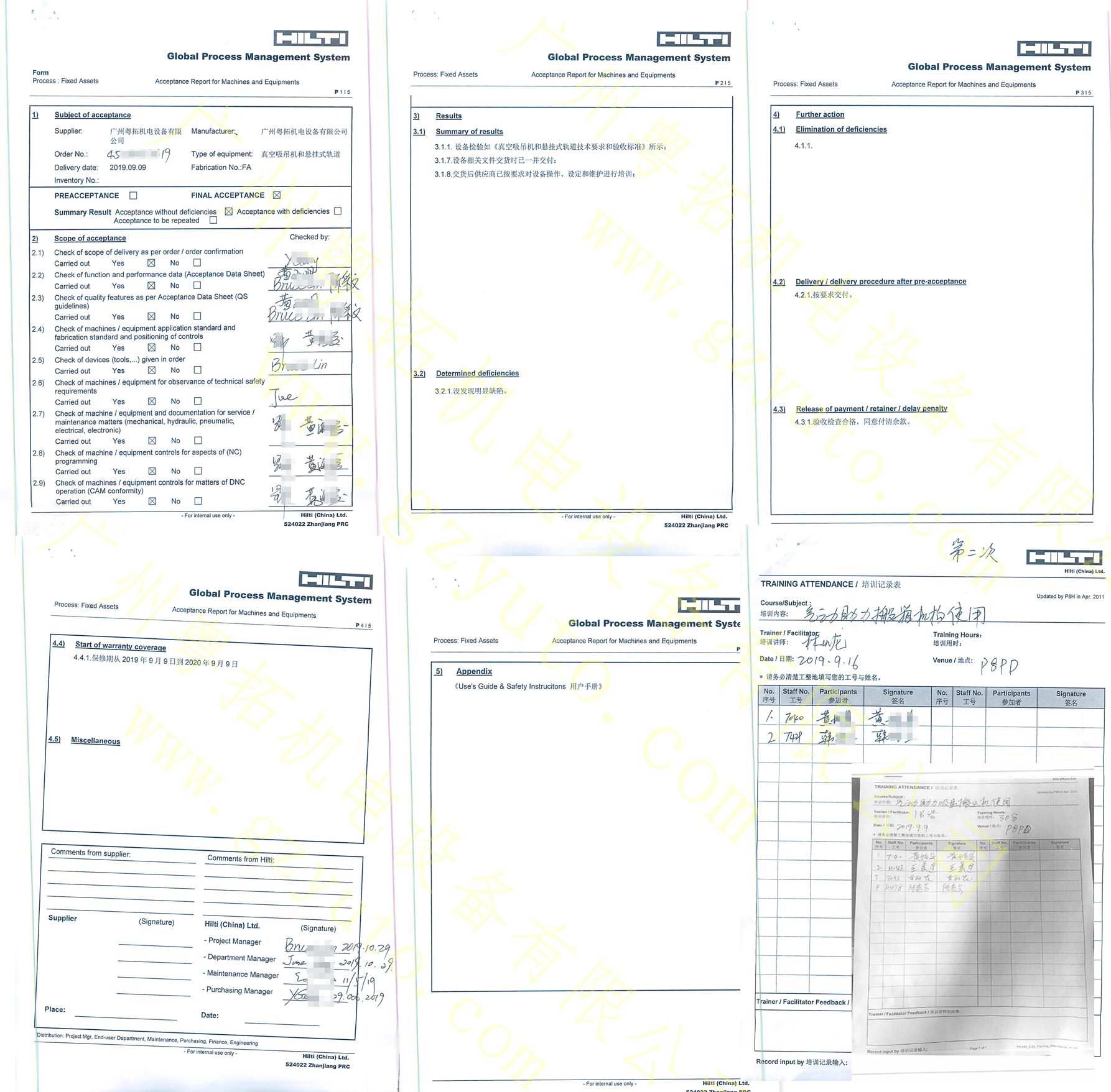 我們的客戶大多是世界一流的公司, 都是各個行業(yè)的翹楚。 按照流程, 設備安裝調試培訓交付使用之后, 通常在1個月內安排驗收。 客戶驗收過程我們偶爾會參與, 然而具體的步驟及內容我們并不清楚。 客戶通知說設備已驗收, 我們就開發(fā)票, 然后等待收尾款。 我們設備的工藝、質量、性能、人性化設計等各個方面都達到甚至超過進口品牌的水平。 因此, 得到了所有客戶的一致認可。每次都是一次驗收通過, 沒有遇到要求我們整改或者返修的個案。