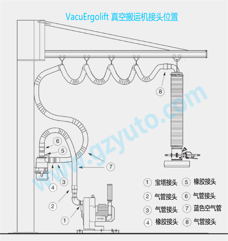 從寶塔接頭、空氣管兩端的橡膠接頭到過(guò)濾器上的橡膠接頭, 以及特制的適配器等等,我們所提供的這些配件能夠非常高效地將空氣管與提升管、真空泵和過(guò)濾器連接起來(lái), 形成一個(gè)密閉的真空系統(tǒng)。所有配件都經(jīng)過(guò)嚴(yán)格挑選,不僅耐用,而且易于安裝, 進(jìn)而最大程度發(fā)揮了高流量真空系統(tǒng)的效率。系統(tǒng)效率越高, 吸盤(pán)單位面積上的吸力就越大。 在這些配件上多花一點(diǎn)小錢(qián)就能取代價(jià)格昂貴結(jié)構(gòu)復(fù)雜的高真空真空泵, 從而為客戶節(jié)省下更多的錢(qián)。只有設(shè)備買(mǎi)回來(lái)能夠穩(wěn)定持續(xù)地工作數(shù)年, 客戶才能從設(shè)備上不斷獲得收益。這正是廣州粵拓VacuErgolift(易施力)系列真空搬運(yùn)機(jī)的價(jià)值所在!