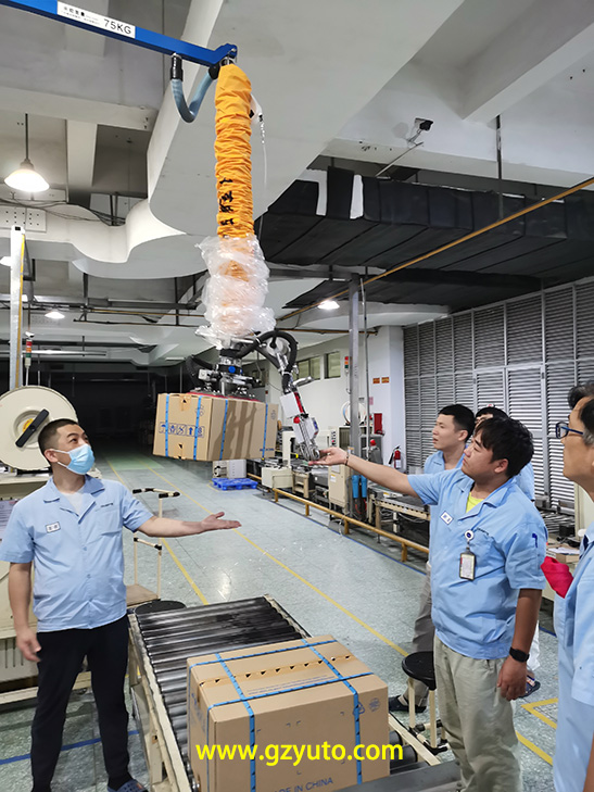 整套設(shè)備采用先進的VT120/3.0 Ext VacuErgolift 真空搬運機 和 折臂吊, 全部由廣州粵拓自己設(shè)計、生產(chǎn)和制造。此套設(shè)備已成功地在眾多客戶中被采用, 如廣能、廚邦、明治等, 并且出口香港海獅機械和香港CVI。